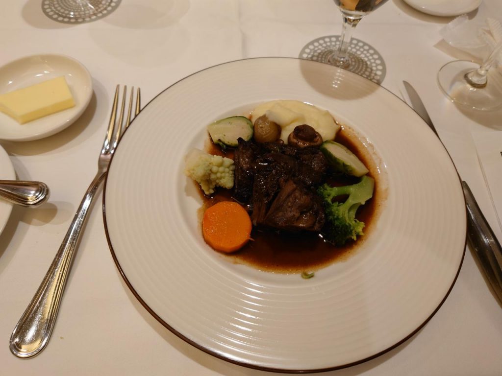 場所は中央区の 「ブラッスリ風間」という上品な雰囲気のフランス料理店です。こちらでコース料理を頂いたのですが、事前に個別で前菜と主菜を選択することができ、私は前菜として「牡蠣のグラタン」、主菜はブフ・ブルギニヨン(和牛肉の赤ワイン煮込み)を選択。どれも非常に美味しく堪能しました。